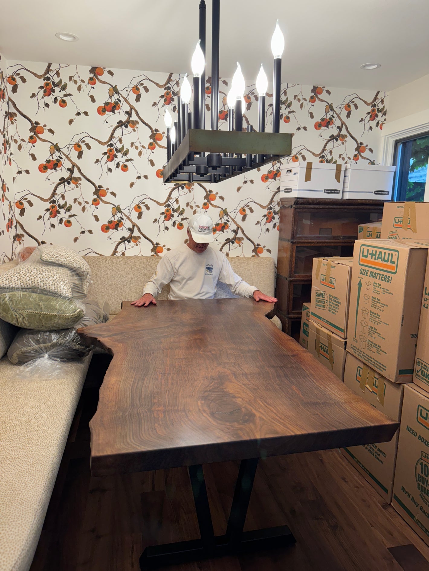 This dining table is made from salvaged double live edge Black Walnut, and serves as the centerpiece for Glen's dining room.