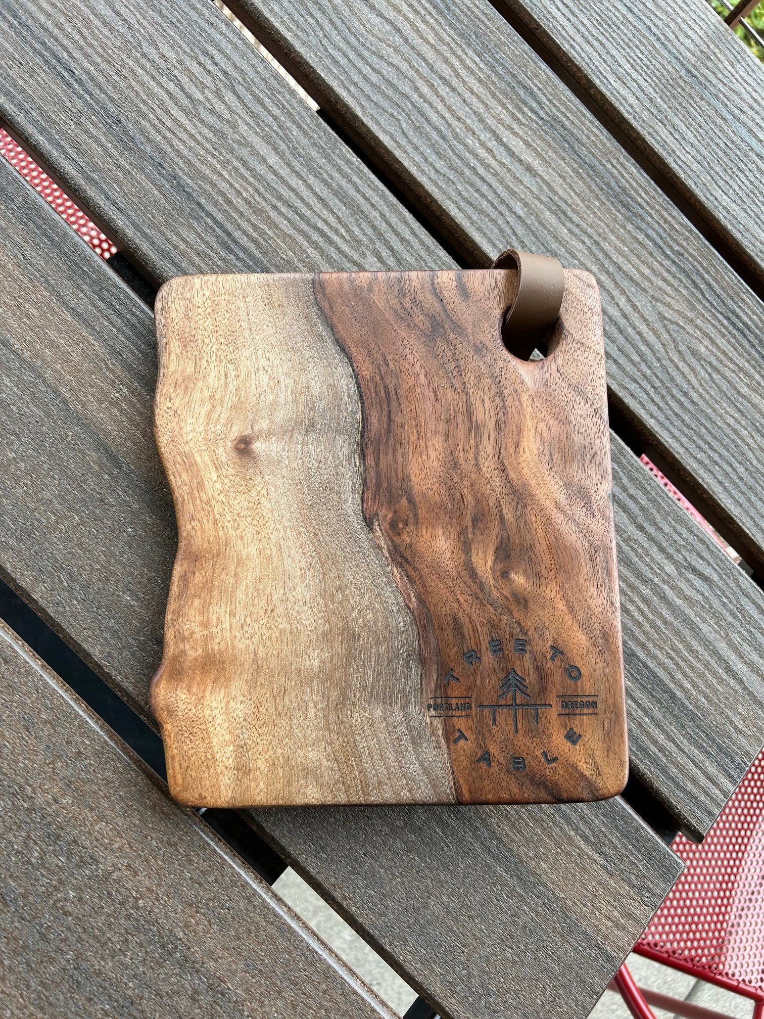 This beautiful charcuterie board was handcrafted from salvaged Black Walnut hardwood in Portland, Oregon.