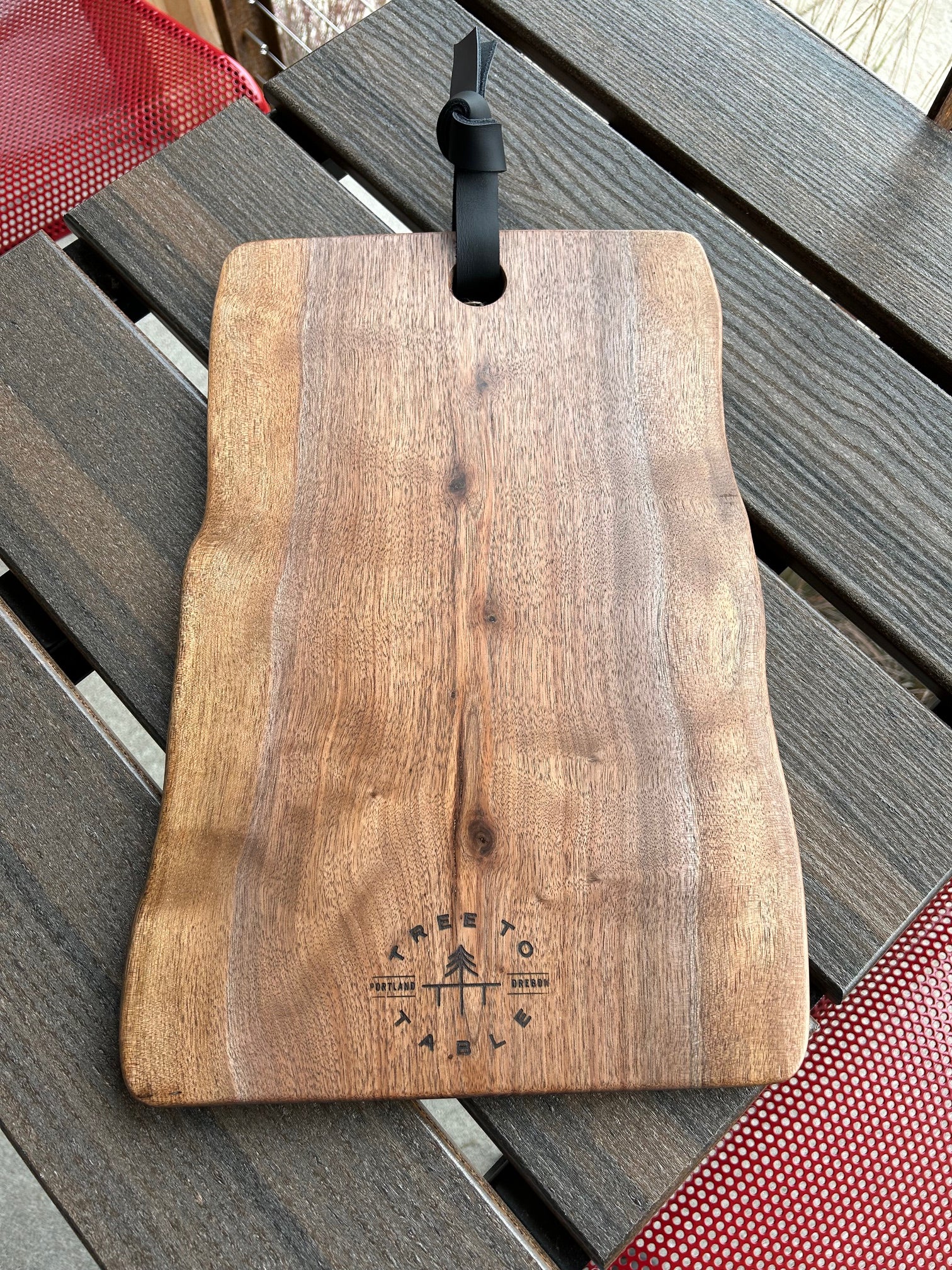 This beautiful charcuterie board was handcrafted from salvaged Black Walnut hardwood in Portland, Oregon.