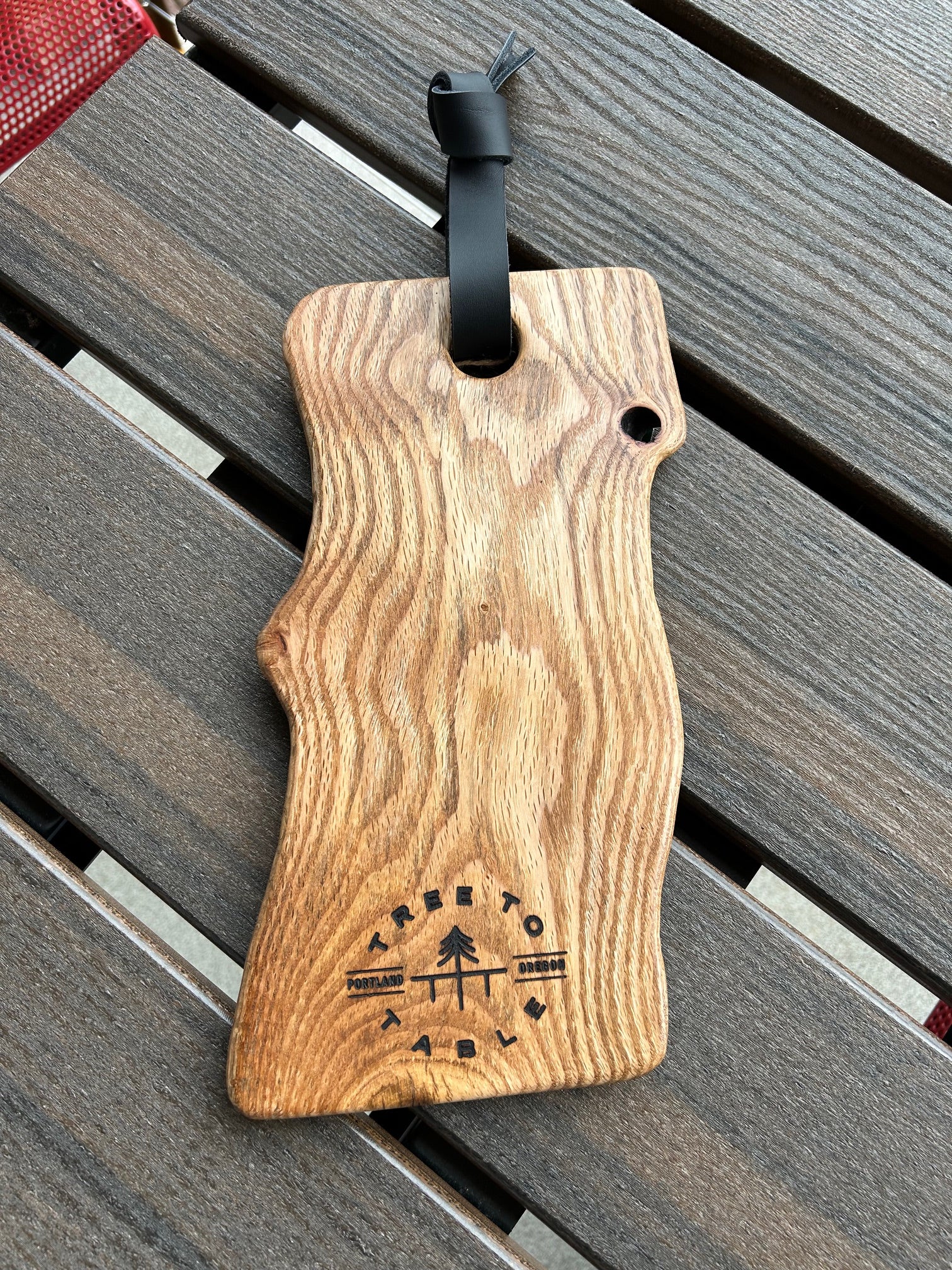 This gorgeous charcuterie board was handcrafted from salvaged Pin Oak hardwood in Portland, Oregon. Sheesh! Check out that beautiful grain.