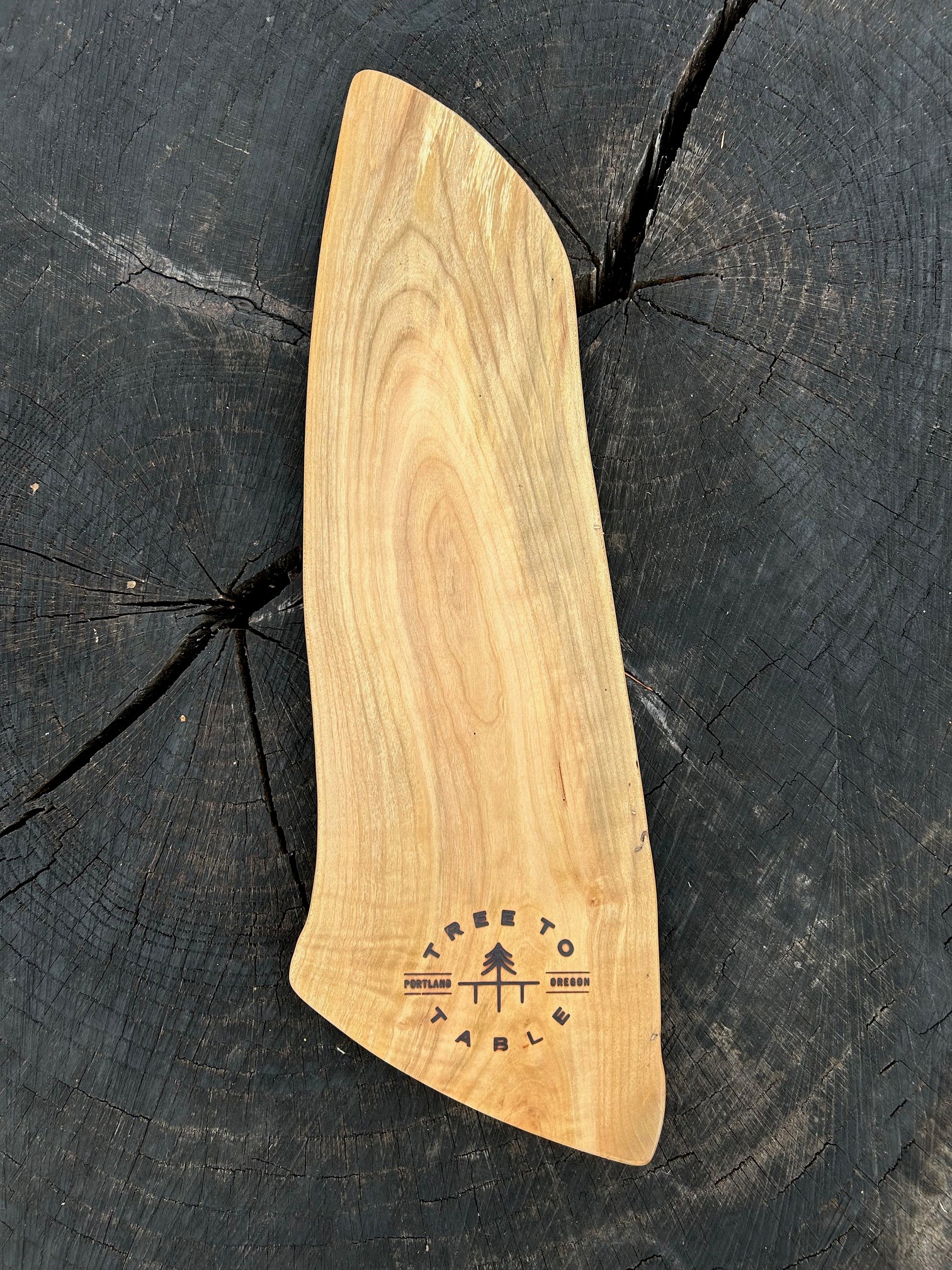 This fun-sized, fun-shaped charcuterie board was handcrafted from salvaged Maple hardwood in Portland, Oregon.
